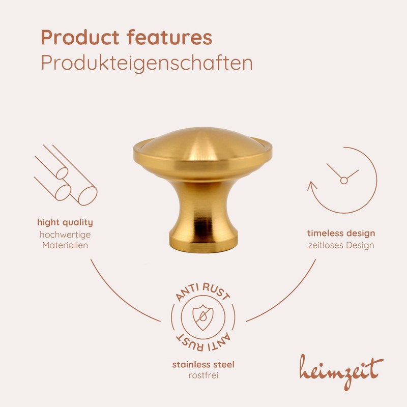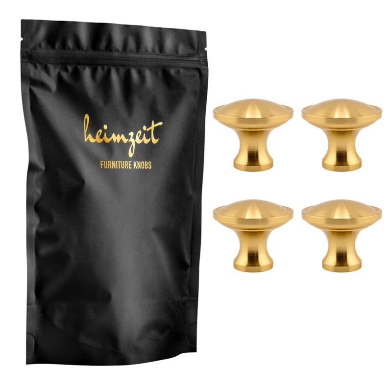 heimzeit Cabinet Knobs for Doors, Drawers and Dressers Made of High-Quality Aluminium [Pack of 4, Round Large] Colour: Gold, Stylish Design, Furniture Knobs with Single Hole Handle and Screws