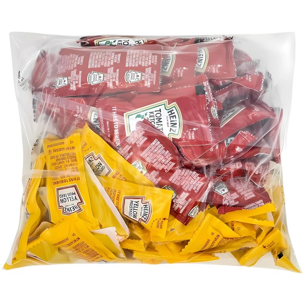 Heinz Condiment Packets Ketchup and Mustard (100 Total; 50 Each Flavor)