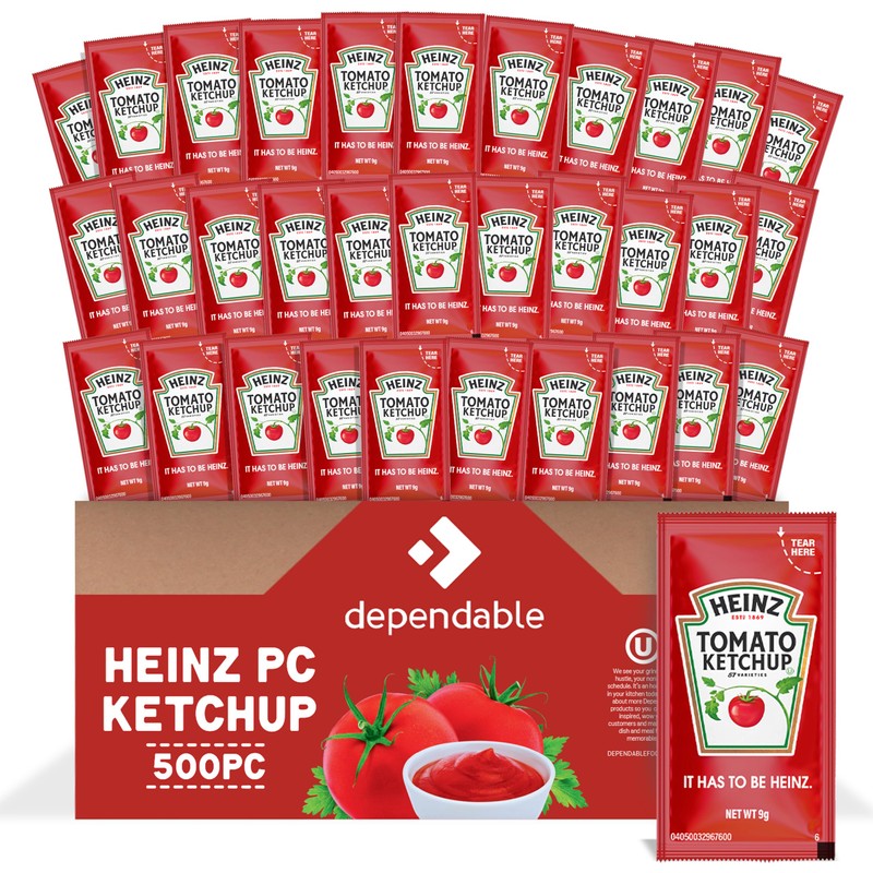 Heinz Ketchup Packets - 500 Count - Single Serve Condiment Bundle, Gluten Free, Kosher – Ketchup Packs Packaged by Dependable Food