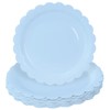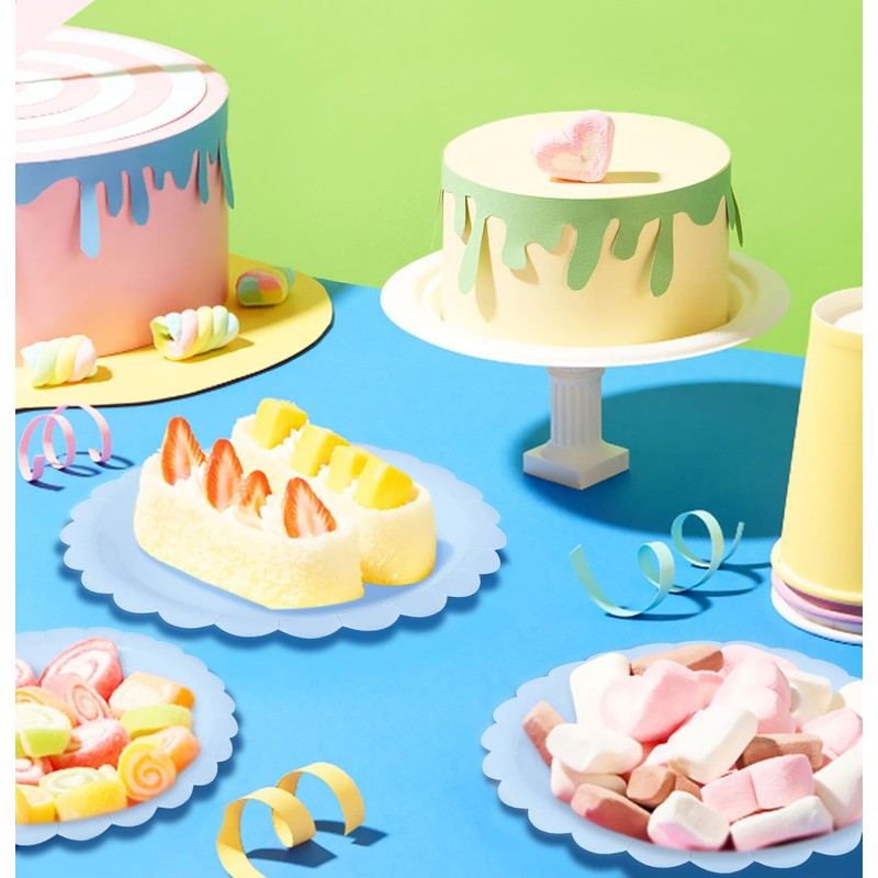 • Blue scalloped disposable plates: The scalloped dessert plates are designed in light blue, simple but advanced, which can quickly set off the party atmosphere and add beautiful to mealtime setting, whether it's a casual gathering or a formal dinner party