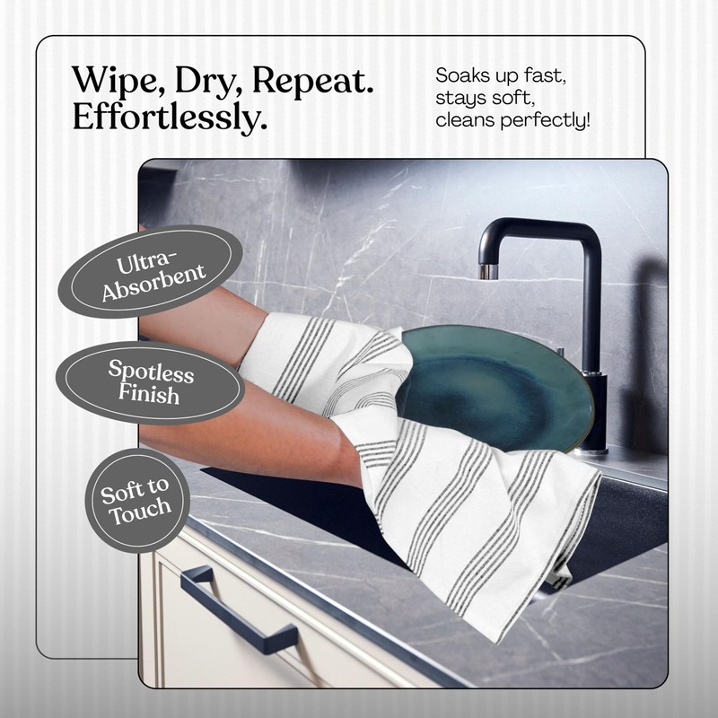 - SUPER ABSORBENT & QUICK DRY: The high dense stripe design enhances absorbency, quickly soaking up spills while drying fast to stay fresh and ready for your next use.