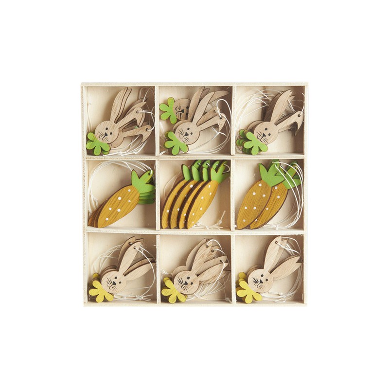 - Easter decoration: the hanging assortment consists of 24 rabbits and 12 carrots. The hangers are available in green, yellow, orange and natural. The hangers are perfect for setting up an Easter nest or hanging them on an Easter shrub or branch.