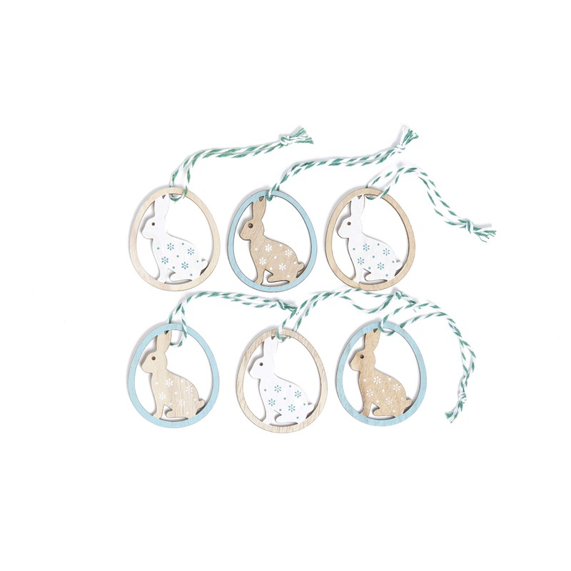 - Good to know: the set contains 16 pendants, each with a small ribbon. The wooden Easter egg pendants have a small rabbit in the middle so they look stylish and can be integrated into any decoration.