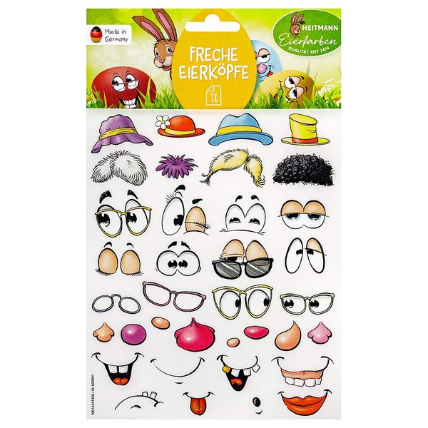 Heitmann Egg Colours Decorative Stickers, Cheeky Faces, Funny Stickers for Easter Eggs - for Boiled and Blown Eggs - Decorate Easter Eggs