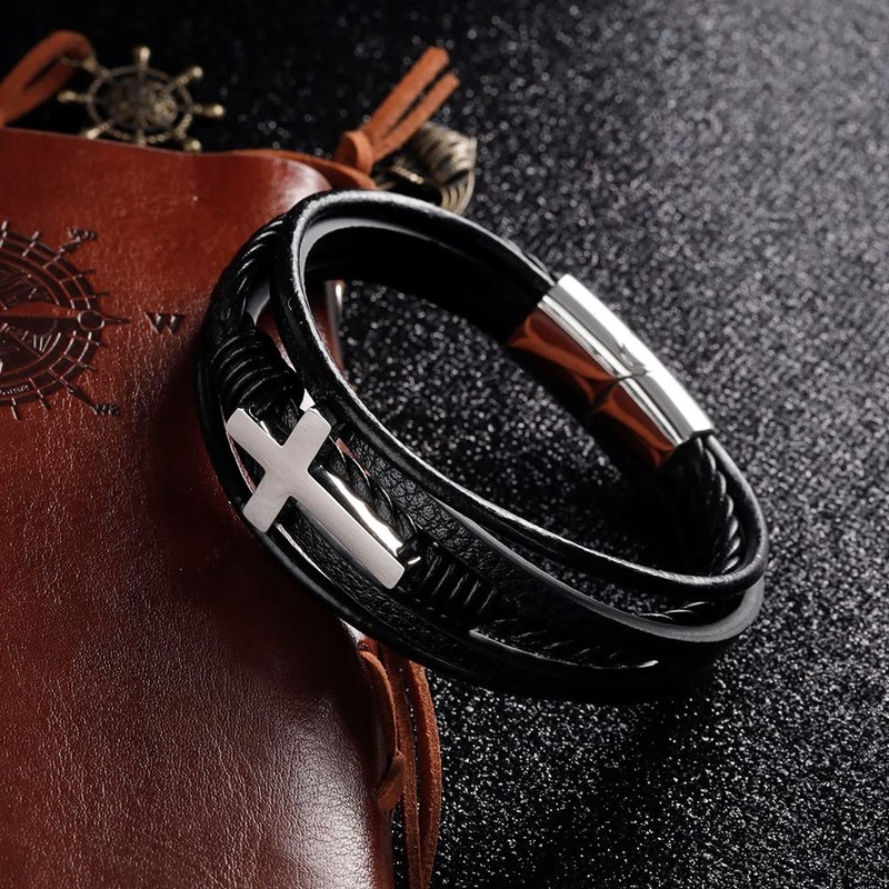 - 【Durable construction】Made with high-quality leather and a sturdy stainless steel cross, this bracelet is built to last and will hold up well to daily wear and tear.
