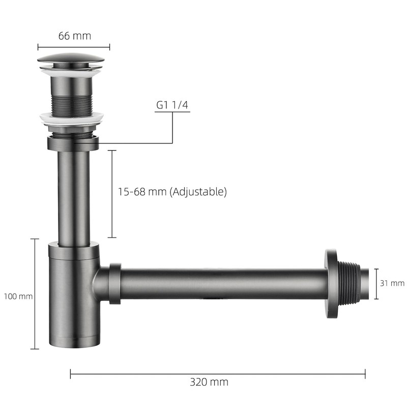 - High-Quality Material: The complete set of Brass P-trap with stainless steel pipes is treated with a grey electroplating surface. It is rust-proof, durable, and requires very low maintenance. It is expected to bring you a worry-free bathroom experience for many years to come