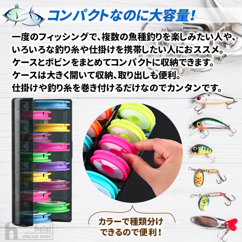 - Recommended for those who want to enjoy fishing multiple species at one time or want to carry a variety of fishing lines and triggers. Case and bobbin can be stored compactly The case opens wide for easy storage and removal. Easy to install and wrap around fishing line