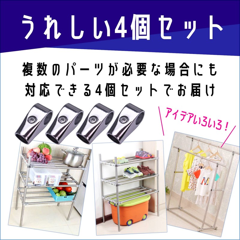 • Simply insert the pipe and tighten with screw: Just insert the pipe and tighten it with the screw, so it is easy to disassemble even when assembled. Convenient for assembling racks that are used temporarily at trade shows. Also comes in a set of 4 so you can use it when you need multiple hanger racks