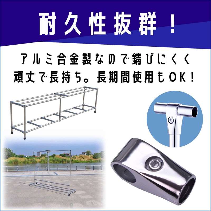 Made of aluminum alloy, so it is sturdy and long-lasting. This joint bracket is made of aluminum alloy, so it is rust resistant and durable. Also recommended when assembling a hanger rack that can be used for a long time.