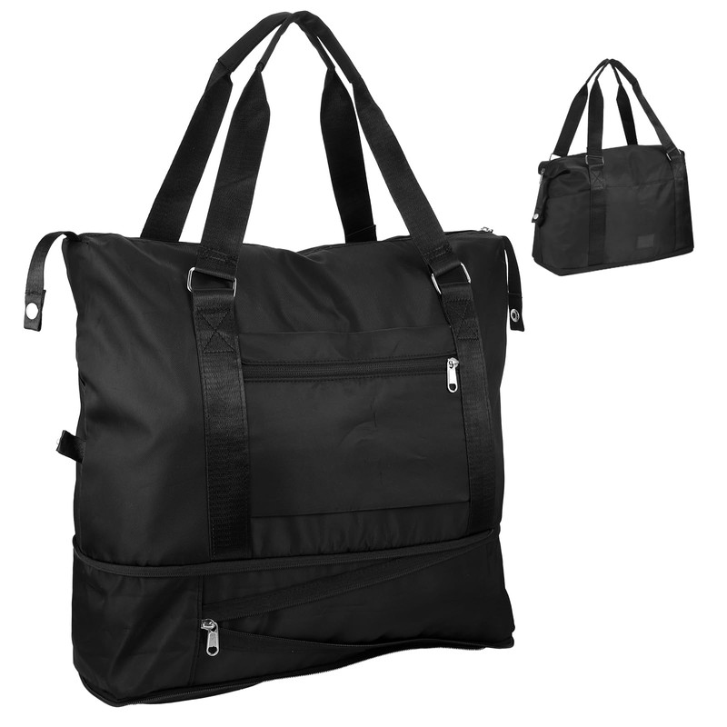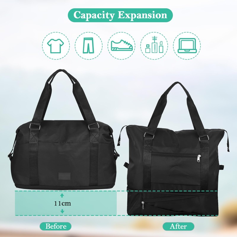 - 【Expandable】: Our black tote bag is designed with a clever bottom zip that instantly increases capacity with a simple pull. Whether you need to take more clothes with you on a long trip or need to load up on loot for an impromptu shopping trip, this design makes it easy. It gives you more flexibility in organising your luggage and stops you from worrying about overweight luggage. When you don't need to carry too much luggage, you can also zip it up to reduce the size and make it easy to carry.