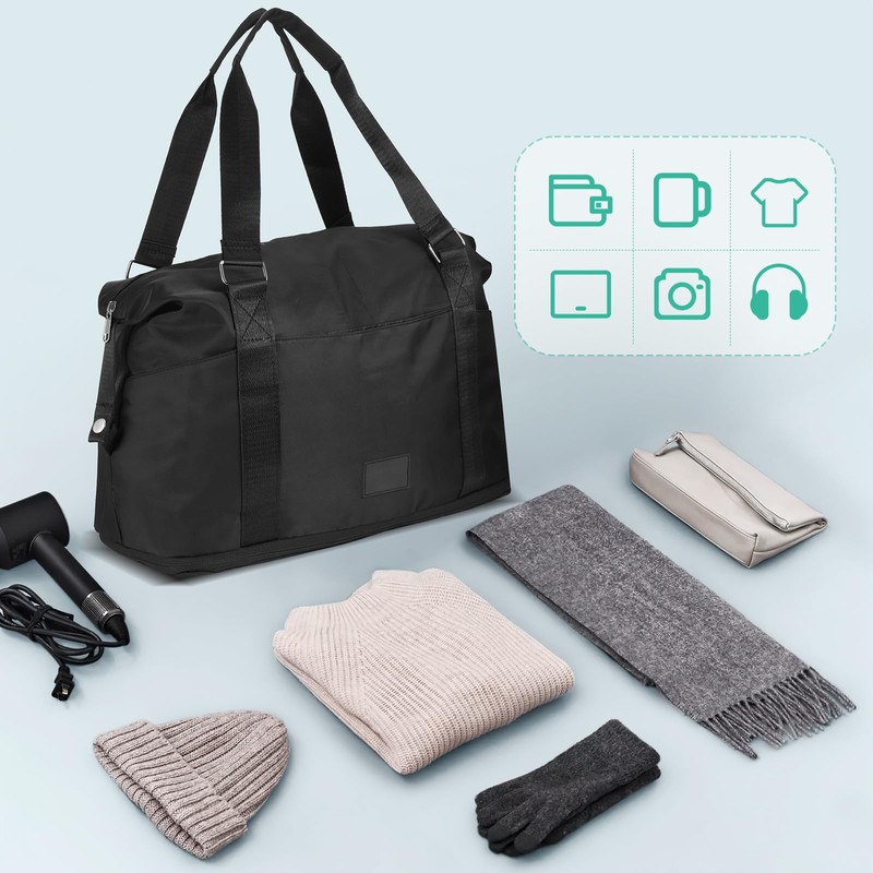 - 【Multiple Pockets】: This travel tote bags for women has multiple pockets inside and outside to keep your luggage more organised. The main pocket can hold large items such as clothes, shoes, etc.; while the small pockets can hold mobile phones, wallets, passports and other small items. This design not only makes it easy for you to find what you need quickly, but also effectively prevents items from getting lost. In addition, the multi-pocket design also makes the bag look more three-dimensional and fashionable.