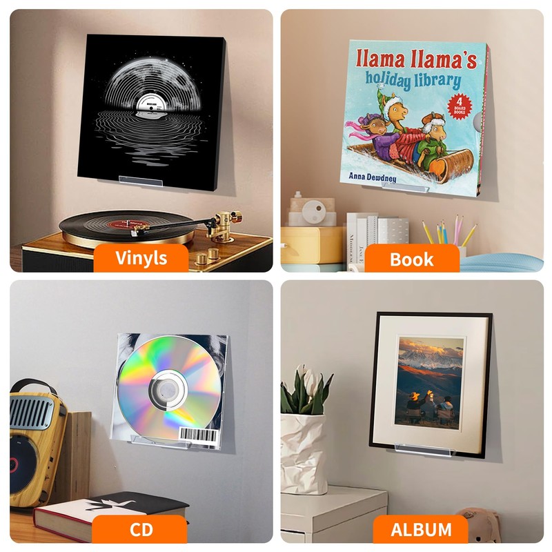 - 【CLEAN AND CLASSIC LOOK】The wall mount record holder set is made of high quality crystal clear acrylic that looks invisible, allowing you to gracefully display your favourite vinyl records on the wall