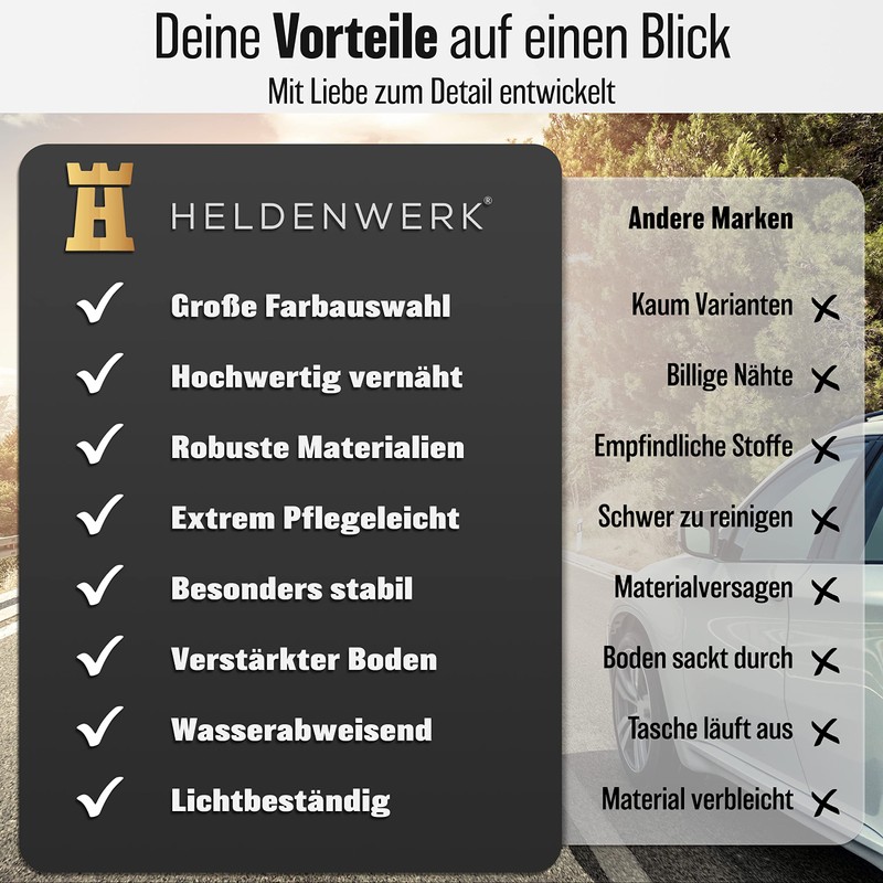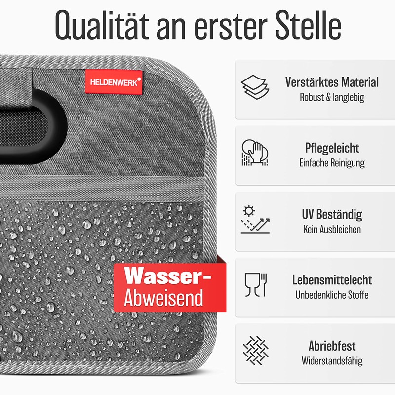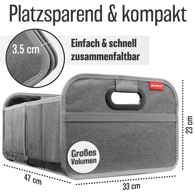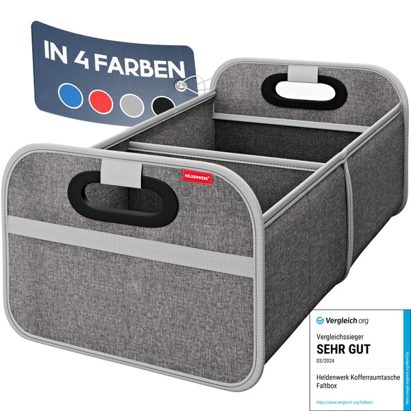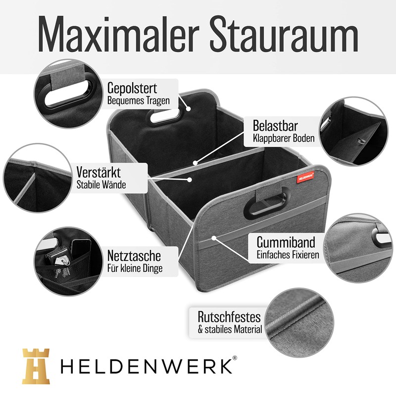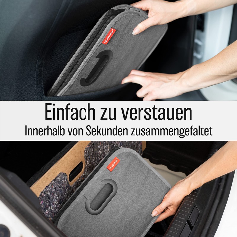 HELDENWERK Car Boot Bag Foldable – Reinforced & Stable – Boot Organiser Shopping Bag for Practical Storage – Non-Slip Car Folding Box, Boot Box (Grey)