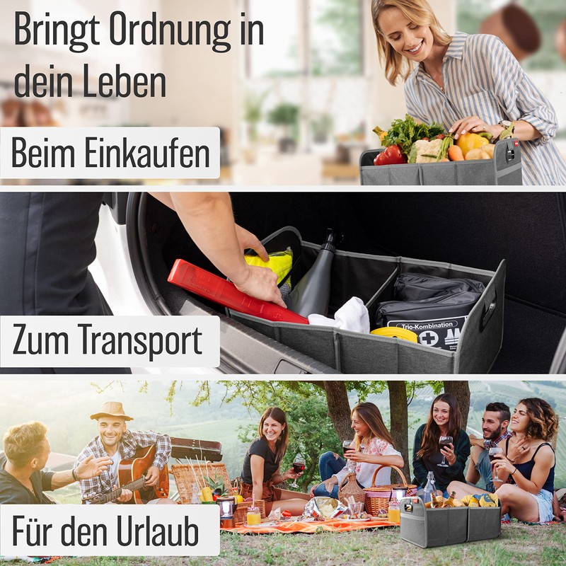 - Unique choice of colours – there is the right colour for every taste. The car folding box can be used individually for shopping, drinks, cleaning products, care products, sports equipment, tools, toys, camping and much more. can be used.