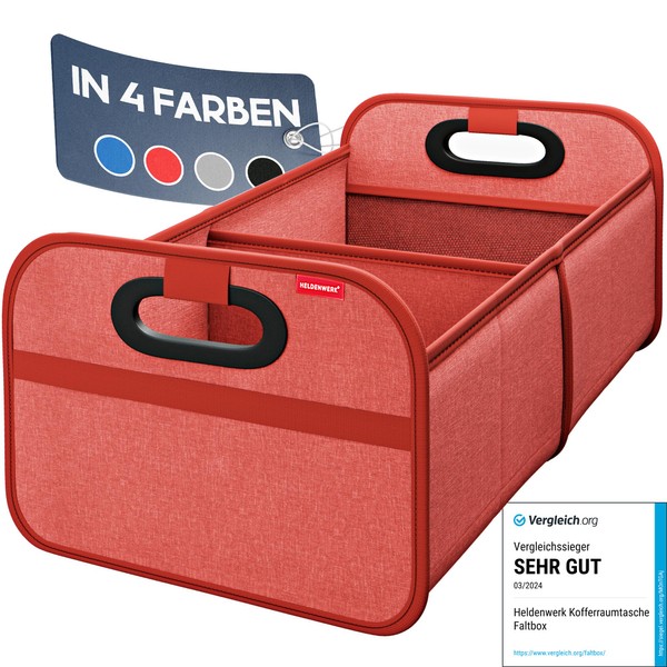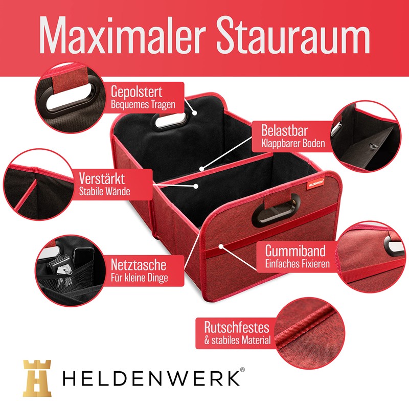 HELDENWERK Car Boot Bag Foldable – Reinforced & Stable – Boot Organiser Shopping Bag for Practical Storage – Non-Slip Car Folding Box, Boot Box (Red)