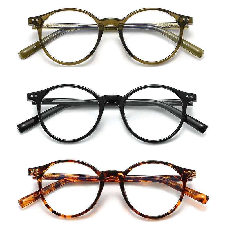 helena 3 Pack Round Blue Light Blocking Reading Glasses sStylish Anti Glare UV Readers (green/black/leopard, 1.5)