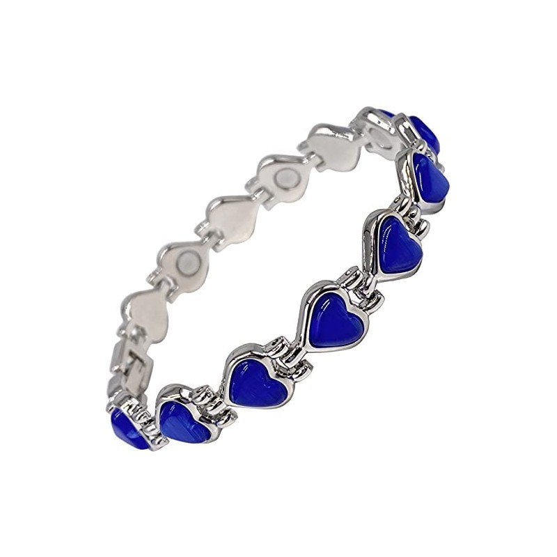 - LADIES BRACELETS - No one will know that when you wear this gorgeous heart shaped silver & blue cats eye gemstone magnetic bracelet you are actually wearing a magnetic bracelet.