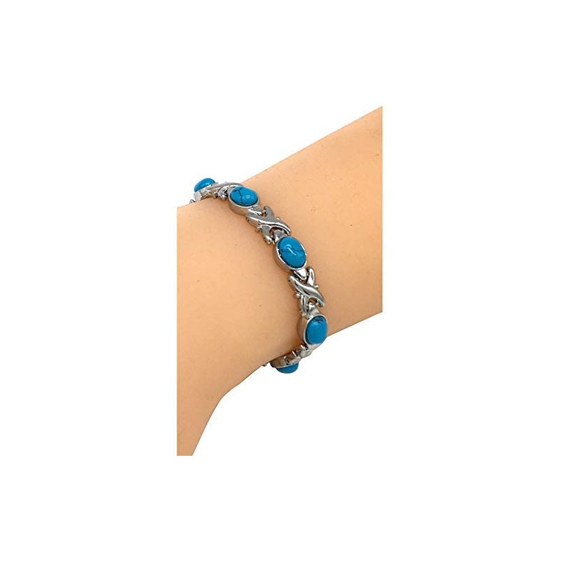 QUALITY BRACELET - If you are looking for an exquisite product that is guaranteed to impress this gorgeous feminine semi-precious stone magnetic bracelet is absolutely beautiful. The blue turquoise stones set in a silver finish linked bracelet that looks attractive at home, work, or during an evening out. .