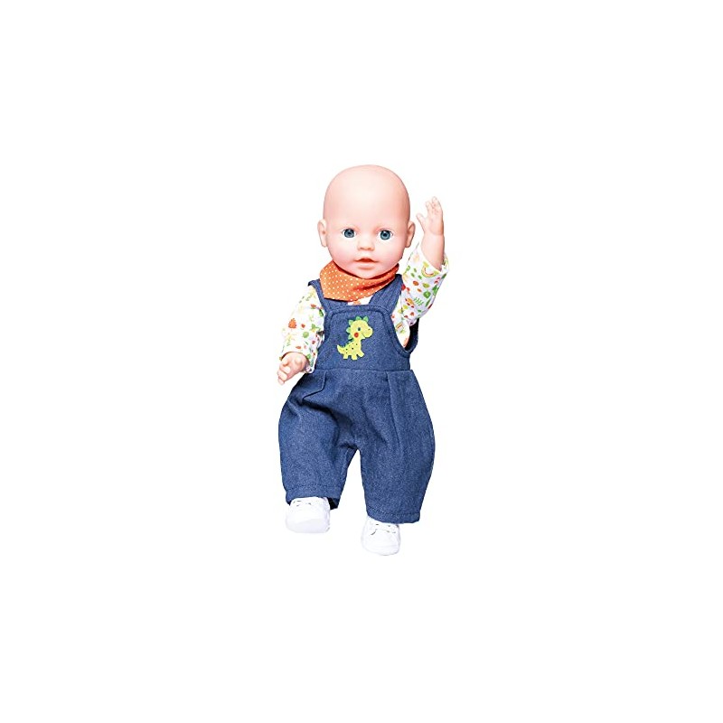 Heless 1115 - 3-Piece Clothes Set for Dolls in Dino Design with Dungarees, T-Shirt and Neckerchief, Size 28 - 35 cm