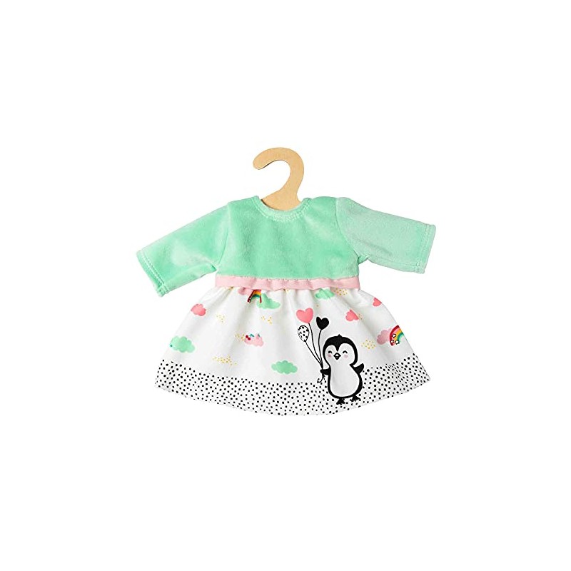 • Magical doll dress in penguin polka dot design with mint-coloured top made of fluffy soft velour and white skirt with cute penguin print. The item comes on a wooden hanger