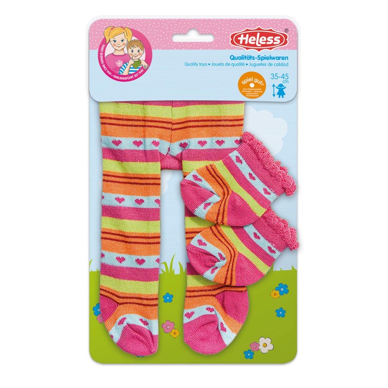 - The fashionable doll clothing set consists of tights and a pair of socks in pink with hearts and stripes, soft pink with floral motif and light blue stripes. An upbeat accessory that turns any doll outfit into an eye-catcher