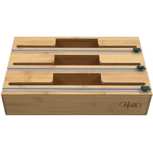 HELIA Bamboo Kitchen Wrap Organizer | Wall Mounting Foil and Plastic dispenser
