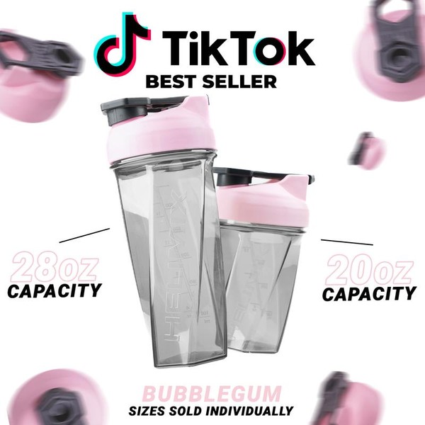 HELIMIX Blender Shaker Bottle Made in USA No Whisk Ball Needed:_Bubble Gum_28oz