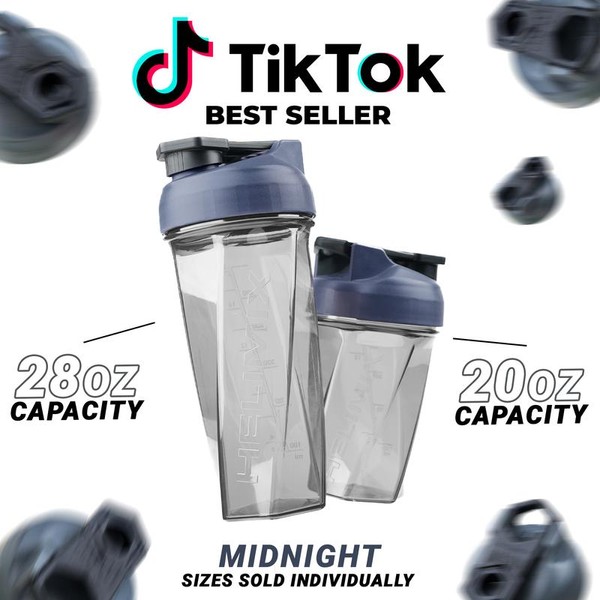 HELIMIX Blender Shaker Bottle Made in USA No Whisk Ball Needed:_Midnight_20oz