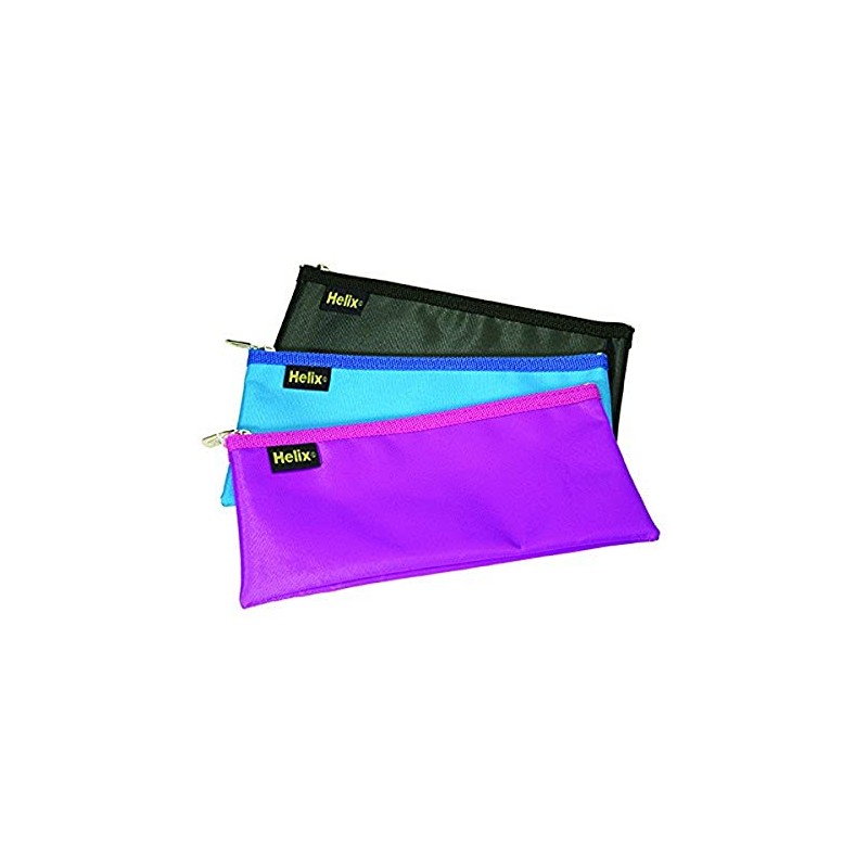 Helix 200x100 Nylon Pencil Case (1 of Assorted Colours - Black Blue and Purple)