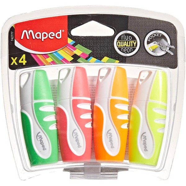 Fluo Peps by Maped, bright colours to highlight your writing! This ideal pocket size highlighter is great for carrying in your pencil case and it even has a hole in the cap to use it as a keyring