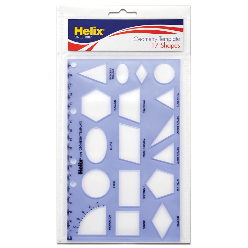 17 of the most popular geometric shapes to help students understand and draw them. All shapes are labeled for easy identification including a built in protractor with angle graduations. Great for younger students! Dimensions: 4 7/8” x 7 13/16”