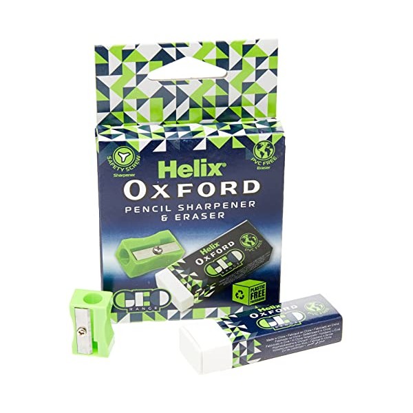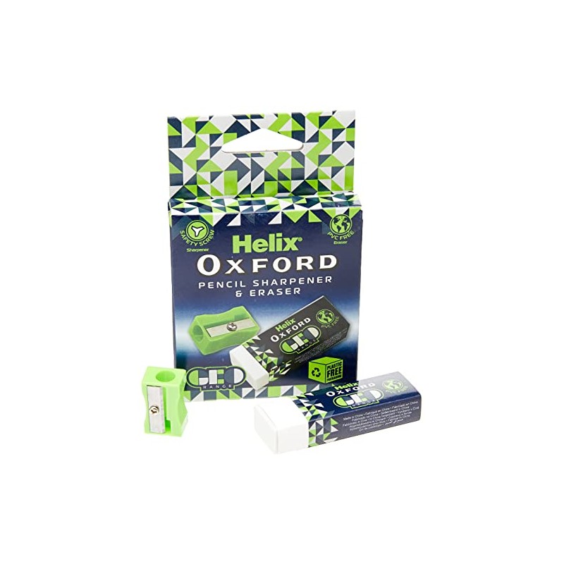 Helix Oxford Geo Eraser and Pencil Sharpener - Green (100202)