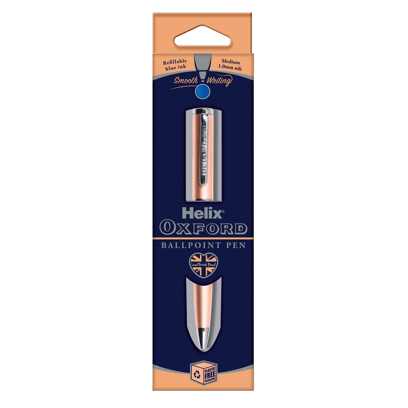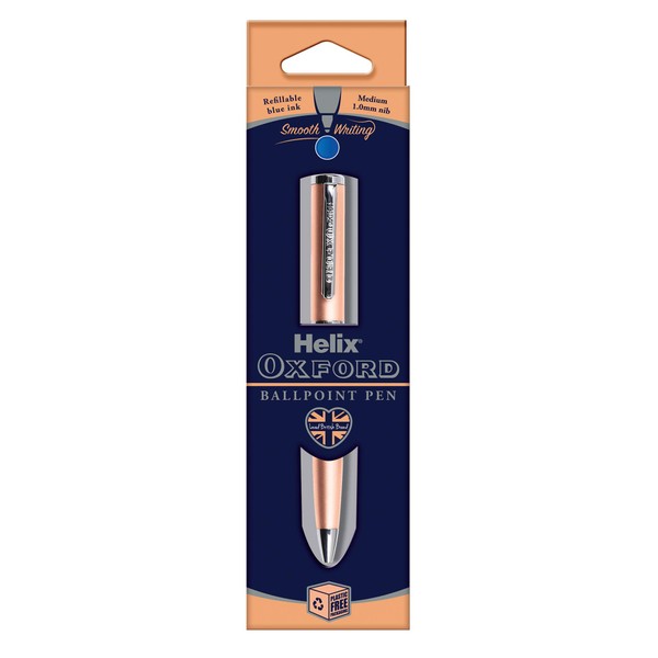 Helix Oxford Premium Rose Gold Ballpoint Pen (Blue Ink) - Plastic Free Packaging, 209818