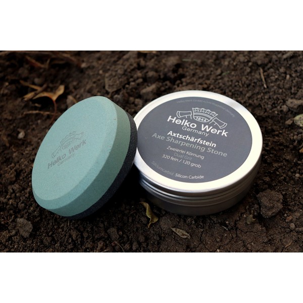 - MADE IN GERMANY - Helko Werk's Axe Sharpening Stone is the perfect field sharpening tool. The contoured shape is easy to grip and allows for safe, simple sharpening. Our stone's dual-grit design offers a coarse side (120 grit) and fine side (320 grit).