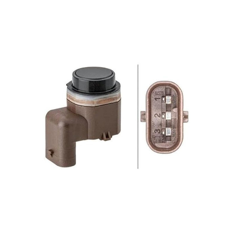 HELLA 6PX 358 141-821 Sensor, Parking Aid - Angled - 3-Pin - Plucked - Can be Painted Over - with Mounting Ring