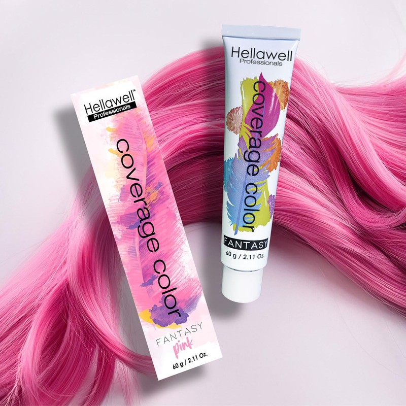 Hellawell Professional Hair Dye. Coverage Color Fantasy - Semi-permanent oxidation coloring cream. Pink 2.11oz