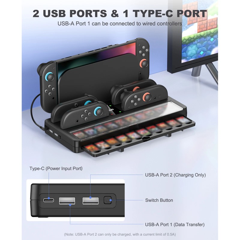 HELLCOOL Charging Dock for Switch 2 & Storage Station 4-in-1 Joy-Con Controller Charger