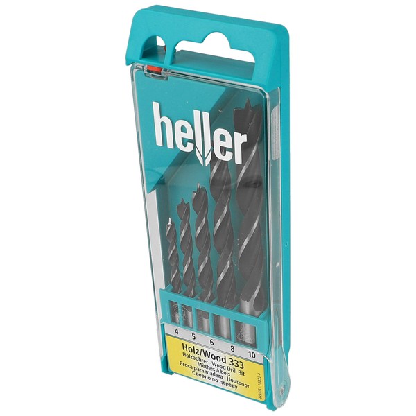 Heller Tools 168724" 0333" Brad Point Bit, Black/Silver, Set of 5 Pieces