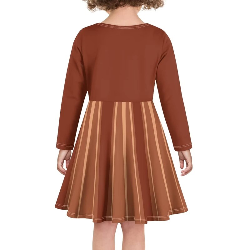 HELLHERO Thanksgiving Turkey Dress for Girls Kids 7-8 Long Sleeve Dresses Casual Swing Midi Dress A-Line Twirly Skater Dress Tunic Top Travel Holiday School Outfit