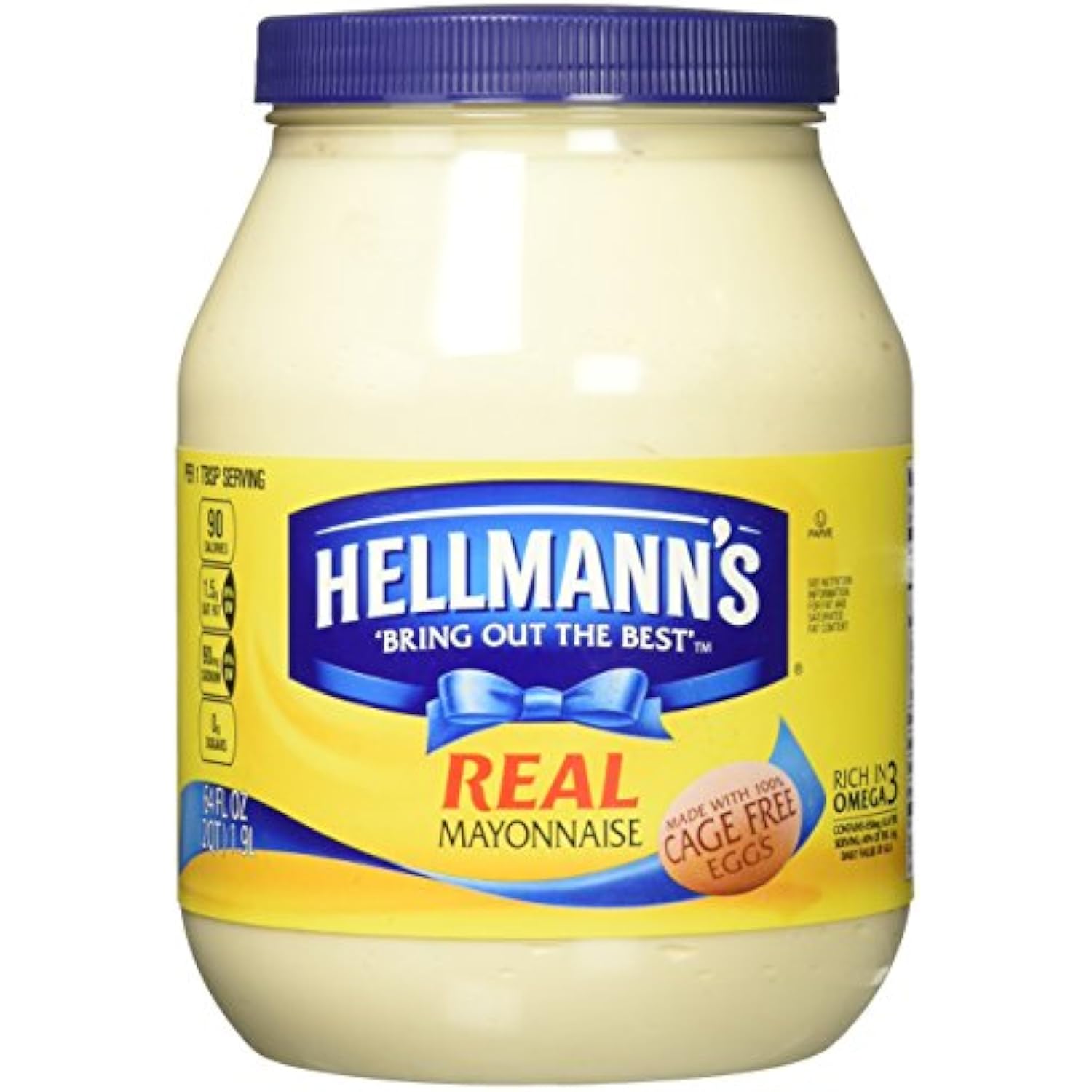 Hellmann's real mayonnaise is a delicious addition to your sandwiches or recipes. Made with simple ingredients of eggs, oil and vinegar, this mayonnaise has the rich and creamy taste you love. Product features: Hellmanns real mayonnaise is a delicious addition to sandwiches or recipes made with simple ingredients of eggs, oil and vinegar creamy and rich taste you love made with cage-free eggs rich in omega 3-ala (contains 650 mg ala per serving, 40% of the 1.6g daily value for ala, 10g fat and 1.5g saturated fat)includes 64 oz. of Hellmann's real mayonnaise.