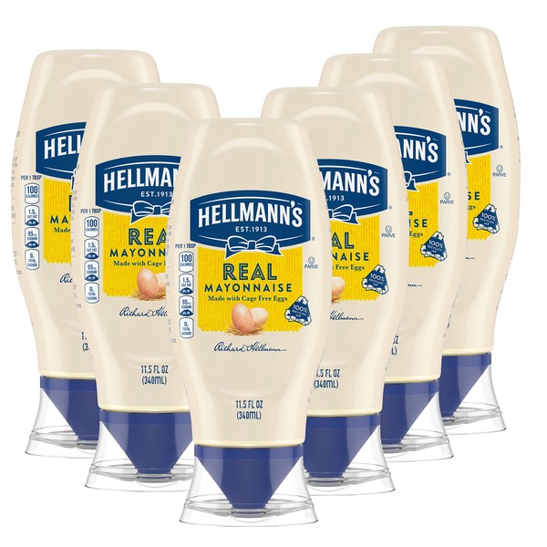 Hellmann's Real Mayonnaise 6 count Real Mayo Squeeze Bottle For a Creamy Sandwich Spread or Condiment Gluten Free, Made With 100% Cage-Free Eggs 11.5 oz