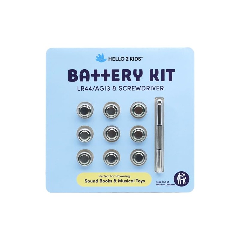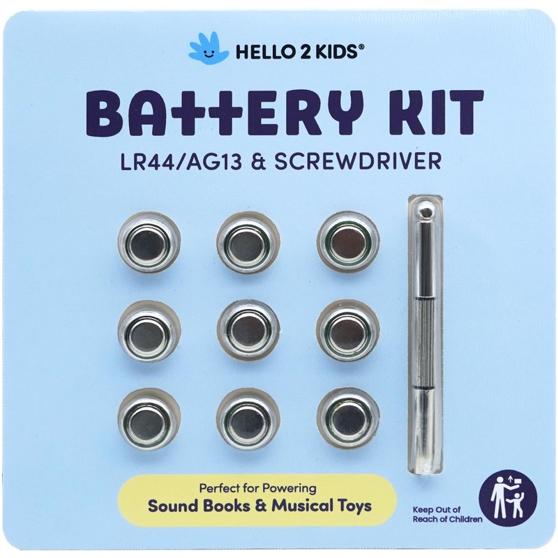 Hello 2 Kids Battery Kit for Sound Books and Musical Toys - Nine LR44/AG13 Button Cell Batteries & Screwdriver