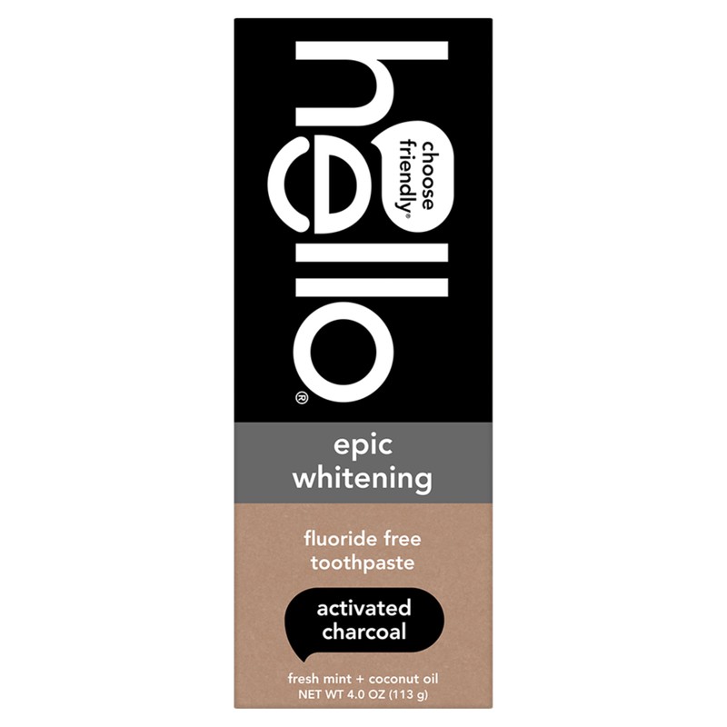 hello Epic Whitening Charcoal Fluoride Free Toothpaste, Activated Charcoal Toothpaste with Coconut Oil, Whitens Teeth Naturally, SLS Free, Fresh Mint, 4.0 Oz Tube