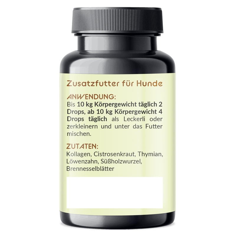 - Ideal für Hunde, die zu Gras- und Kotfressen neigen: Unsere Leckerlis enthalten natürliche Inhaltsstoffe wie Kollagen, Cistrosenkraut, Brennesselblätter, Löwenzahnkraut, Thymian und Süßholzwurzel, die deinem Hund wichtige Nährstoffe liefern.