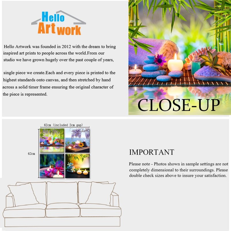 Hello Artwork Canvas Prints Zen Art Wall Decor Spa Massage Treatment Painting Picture Orchid Flower Frangipani Bamboo Flaming Candle Print On Canvas 4 Panel Ready to Hang 12''x12''x4pcs