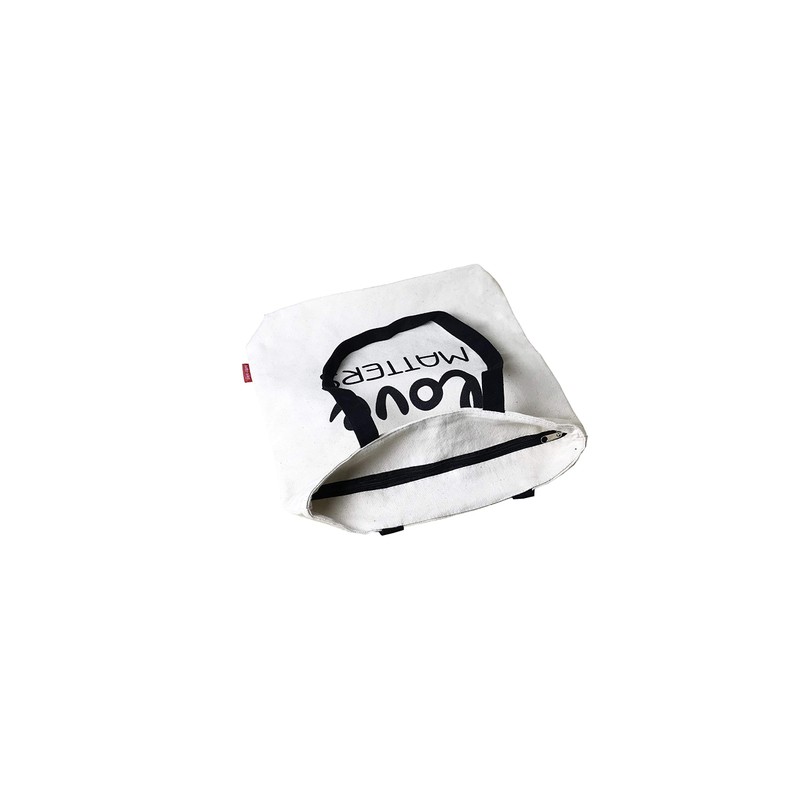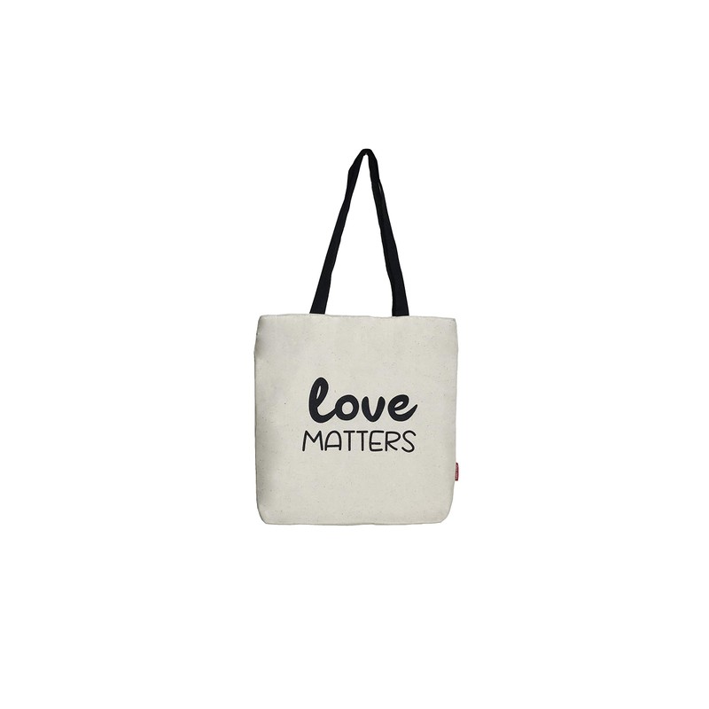 Hello-Bags. Canvas shopping bag. Outer: 100% cotton. Includes zip, lining and inner pocket. Packed in a kraft gift envelope. Model: "LOVEMATT". Colour: ecru/black., White (White), Beach bag