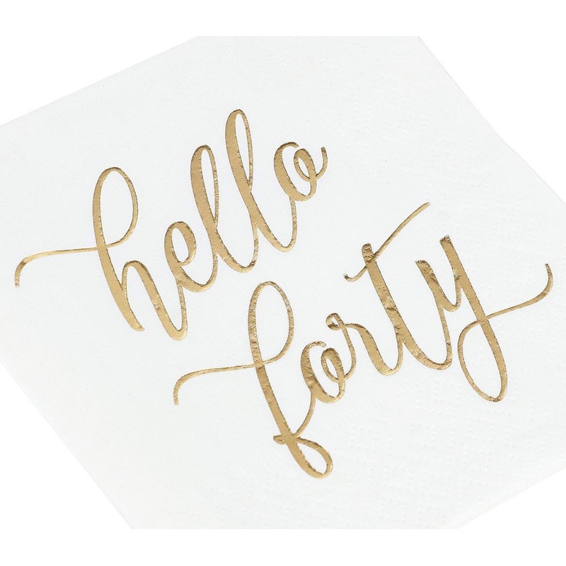 Hello Forty Birthday Napkins with Gold Foil Details (5 x 5 In, White, 50 Pack)
