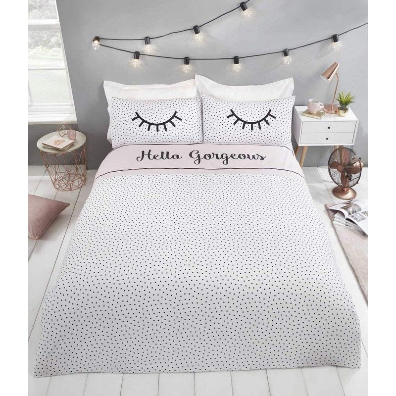- Hello Gorgeous Duvet Set, bed time sealed with a flutter of eyelashes!