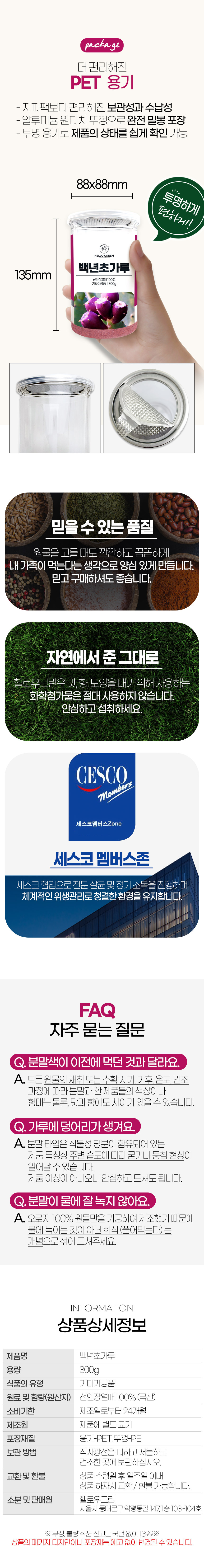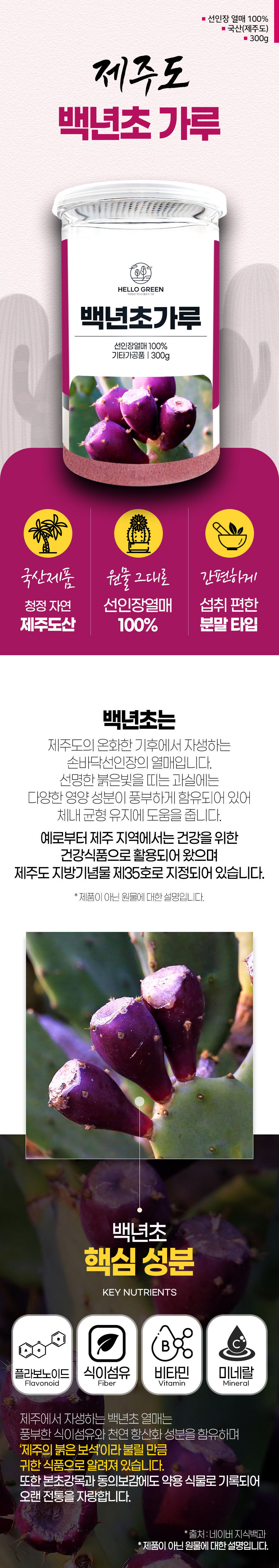 헬로우그린 국산 제주도 백년초 가루 분말 300g