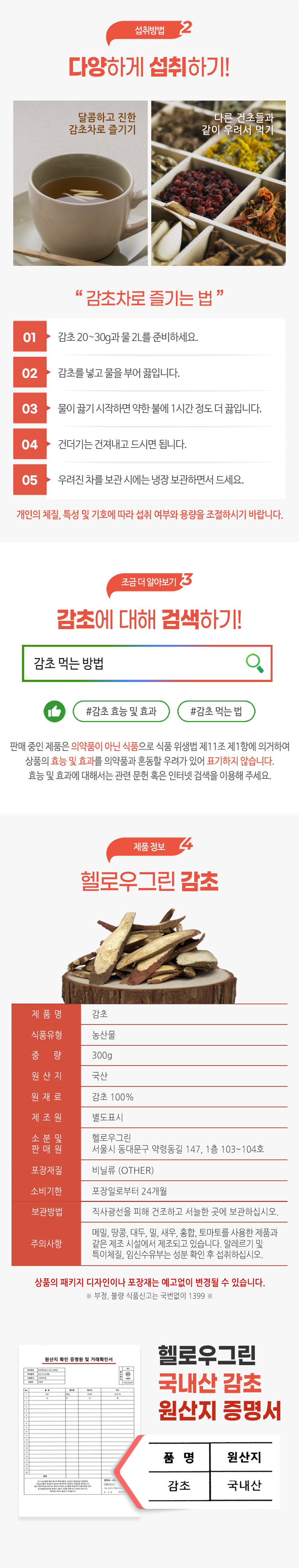 Hello Green Domestic Licorice 300g (pack) / 헬로우그린 국내산 감초 300g(팩)